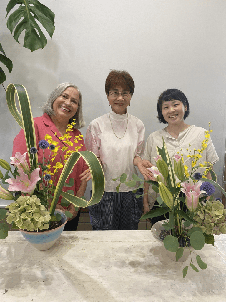 One must take their time and listen to the flower to understand where it wants to be placed. I know, I was doubtful too that a flower would “talk “to me, until it did! And no, we did not drink any sake before the class!