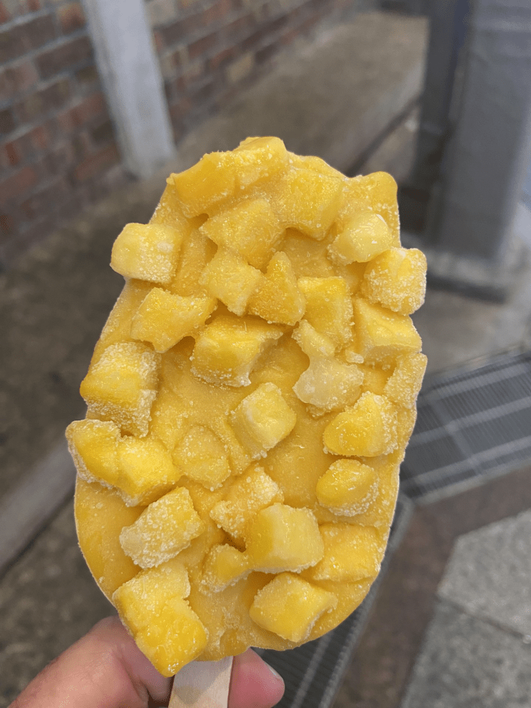 I bought a cold, fruit popsicle on a terribly hot day and of course had to eat it before it melted. I received numerous disapproving glances, prompting me to quickly search for a seat to sit and finish the popscicle before proceeding on my walk. And of course, I put the wooden stick in my purse and carried it back to my room.