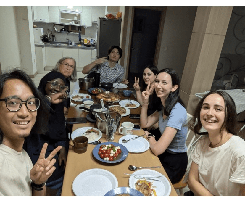 My dorm and teaching mates are young people from France, Italy, Slovenia, Canada, Germany, Azerbaijani and Senegal. One young woman is Muslim and wears the traditional Hijab. We have had some great conversations and I am learning a lot from her. We are 8, sleeping in bunk beds and sharing one bathroom, kitchen and dining area. As the oldest I am up early and go to bed early and therefore never have a problem waiting for the bathroom to open up.