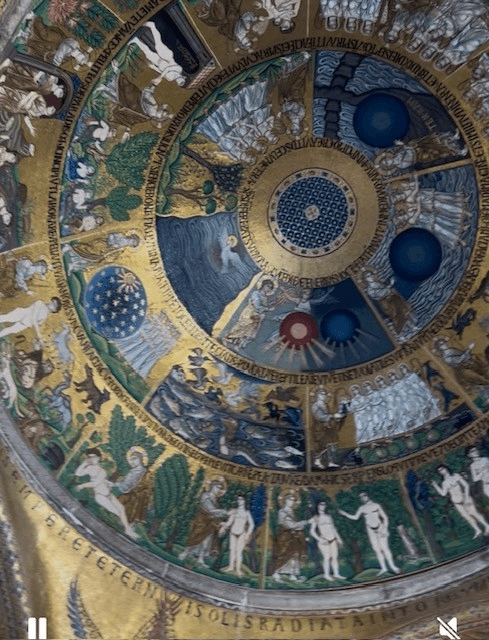St. Marks basilica was scene after scene of biblical stories and saints all composed of tiny intricate mosaic tiles. The ceiling were stories high. I can only imagine the men who created the scenes, laying on their backs on scaffolds, cementing small tiny tiles piece after piece.